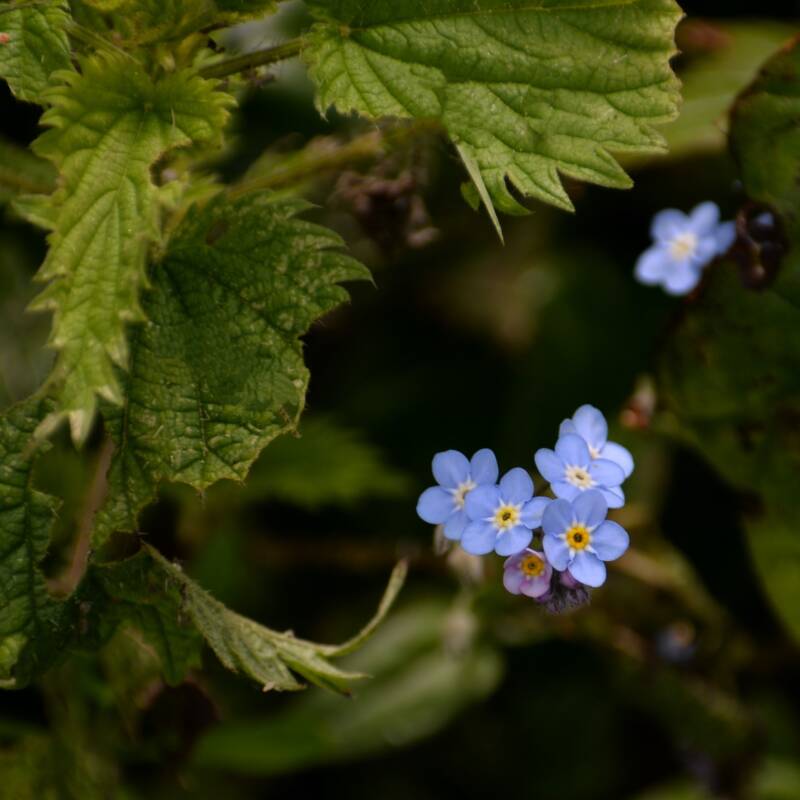 Pour le moins modeste le Myosotis déploie ses fleurs presqu’en douce. Une à une. Des corolles charmantes et romantique. Mais si petites. Ses fleurs d’un bleu pur presque 'électrique' à petit œil jaune.