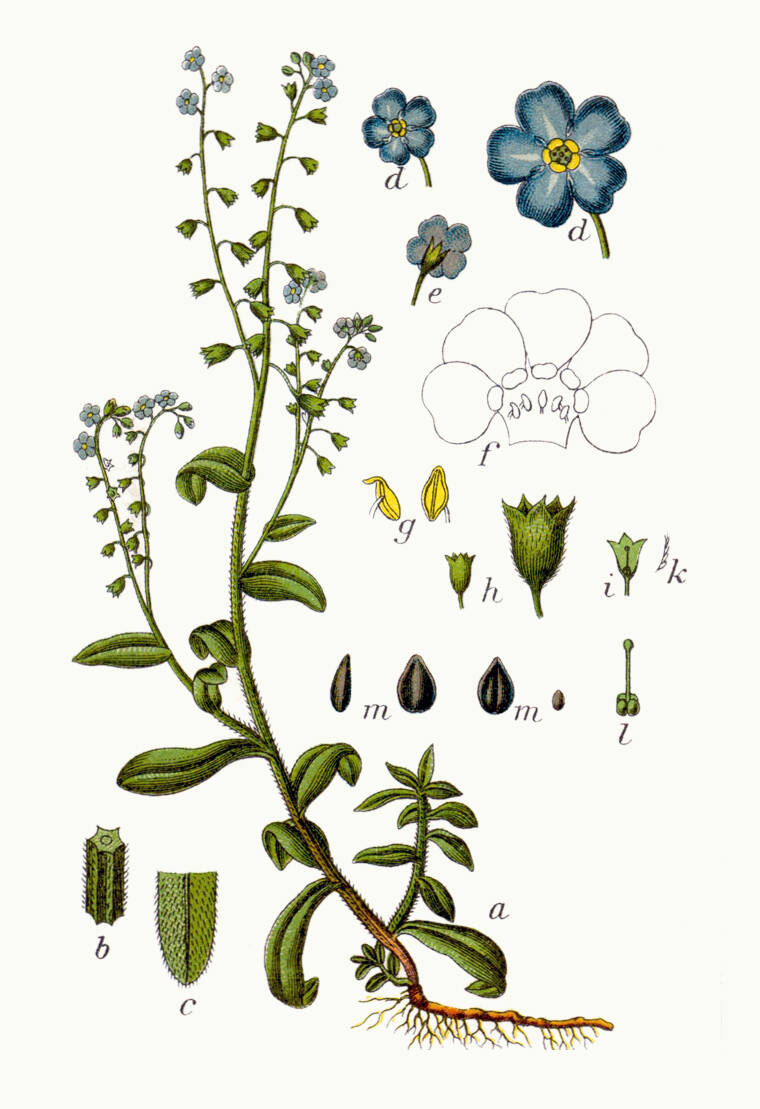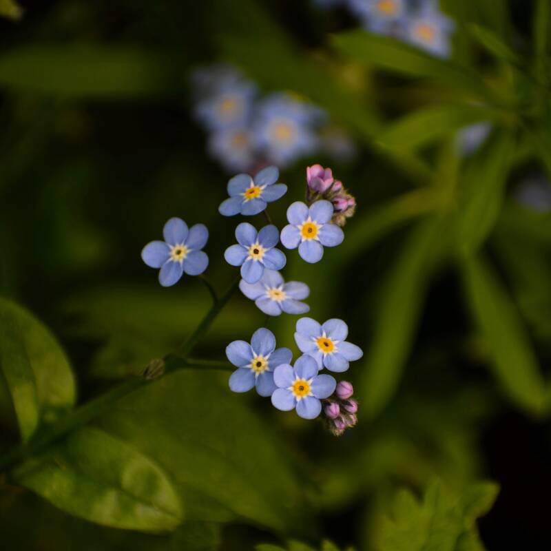 Bien évidemment, le myosotis est connu pour son symbolisme. Le nom révèle déjà tout : le myosotis est synonyme de loyauté, d'amour et d'adieu. Le déclencheur de ce grand pouvoir symbolique sont les belles, délicates et modestes fleurs avec leur incomparable éclat bleu ciel. Il existe de nombreuses interprétations. Par exemple, les fleurs symbolisent l'éclat des yeux des amoureux ; on dit aussi que les fleurs symbolisent le ciel avec leur couleur et le regard éternel vers lui. Le nom est apparu dès le XVe siècle et s'est répandu dans de nombreuses langues. Elle restera probablement à jamais associée au fort sentiment de nostalgie, de mélancolie et de romance - ce mélange d'amour tendre, de beauté et de tristesse. C'est la "fleur bleue" qui a été décrite par de nombreux poètes.